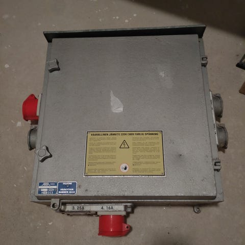Useita CEE-voimavirtapistorasioita (16A ja 25A)
