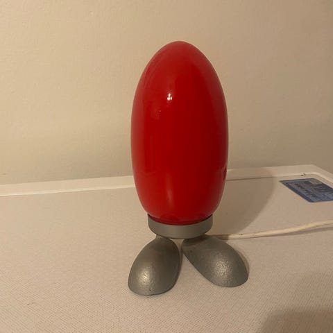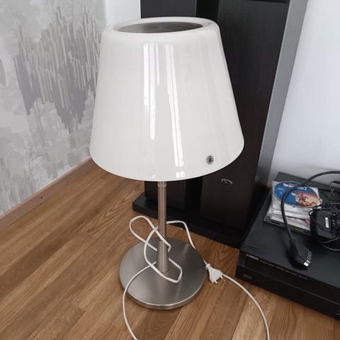 Ikean valkoinen vanhaa mallistoa oleva Fjorton pöytävalaisin. Tunnettu myös nimellä dinon muna. Hyvässä kunnossa, kaikki toimii.