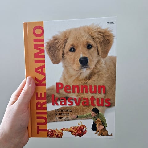 Lisäämällä teoksen pentupakettiisi varmistat, että pennunottajasi saa kunnolliset ja laaja-alaiset perustiedot." pentu koira koulutus kasvatus opas