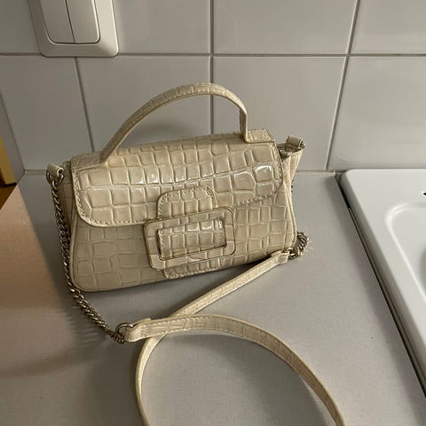 Myydään ZARA-merkkinen musta olkalaukku. Väri musta. Materiaali 100% polyuretaani. Malli pieni olka-/pikkulaukku. Suljenta magneettinapit + vetoketjutasku. Hihna irrotettavissa, säädettävä napituksella. Metalliosat hopeanväriset. Kunto on käytetty mutta siisti. Ulkopinnassa pientä normaalia käytön jälkeä ja kevyttä kiiltoa, ei repeämiä. Vetoketjut ja nepparit toimivat normaalisti