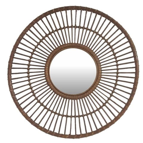 Trendikäs riippuva peili tuo ripauksen sulavalinjaista vintagetunnelmaa moderneihin sisustuksiin. Suurikokoinen, pyöreä peili on reunustettu luonnollisella keisaripuulla ja sen voi ripustaa seinälle pehmeän ja sileän keinonahkavyön avulla. Hihnan avulla peilin korkeutta voi säätää, jonka ansiosta se tuo joustavuutta sisustamiseen.