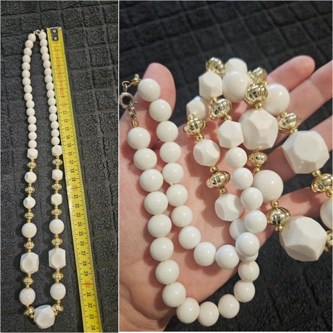 Pitkät 60cm Retro / vintage henkiset muovinen helminauha kaulakoru. Saattaa olla ehkä jotain kulumaa.