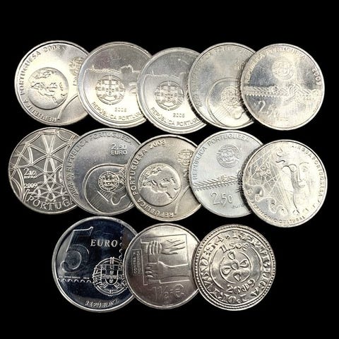 Portugali. Lote de 200 Moedas de Portugal, Várias Datas, denominações e metai