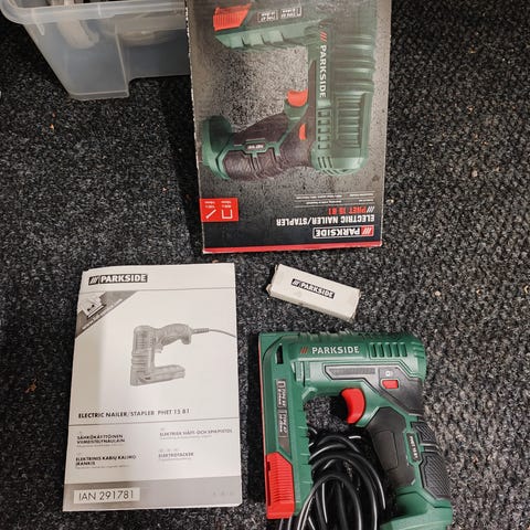 Parkside PAT A1 20 Li A1 akkukäyttöinen naulain. Sopii naulojen kiinnittämiseen ilman johtoa, mikä lisää liikkumisvapautta työskentelyssä. Käyttöjännite 20 V. ei akkua/laturia! Käyttämätön salkussa.