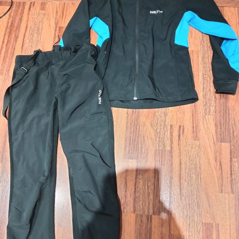 Halti hiihto housut väri musta. Miesten M koko. Etureisissä toppapanelit, vyötäröltä polviin. Sisäpuolella harjattu fleece reisien kohdalla. Pieni vetoketjullinen tasku takana. Vyötäröllä nauhakiristys ja jälki lisäyksenä henkselit. Henkselit saa irti ja niiden pituutta voi säätää tarralla.