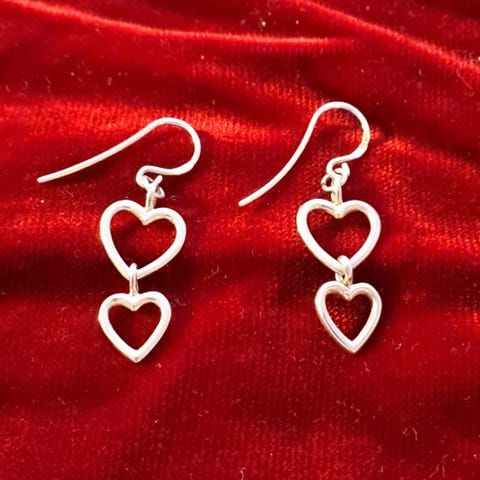 Hopeiset käyttämättömät korvakorut. Isoimmat eivät ole hopeaa. Pienemmät ovat. Glitteristä ostettu.