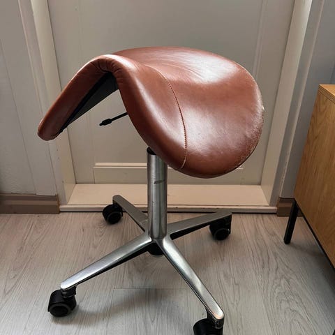 Hakusanat: säätö, nykyaikainen, kotitoimisto, satulatuoli, korkeus, työ toimistotuoli, Tuoli, ergonominen, tuolit, työtuolit, istuin, korkeudensäätö, pumppu, satula työtuoli, moderni, skandinaavinen, toimisto, minimalistinen, työtuoli, metallijalusta, musta, käytännöllinen, pyörät, kulunut, huonekalu, käytetyt huonekalut, huonekalut, huolto