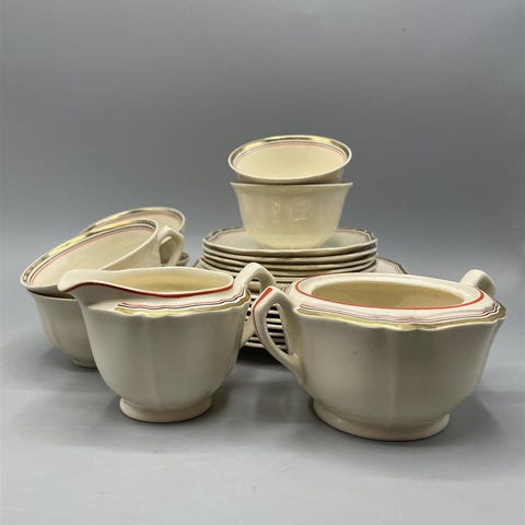 Arabia kahviastiat 14-osaa. Piippuleima 1932-1949.Kuppi, tassi ja pullalautanen kaikkia 6kpl. Sokerikko(ei kantta) ja kermakko. Extrana mukaan 2kpl pullalautanen.