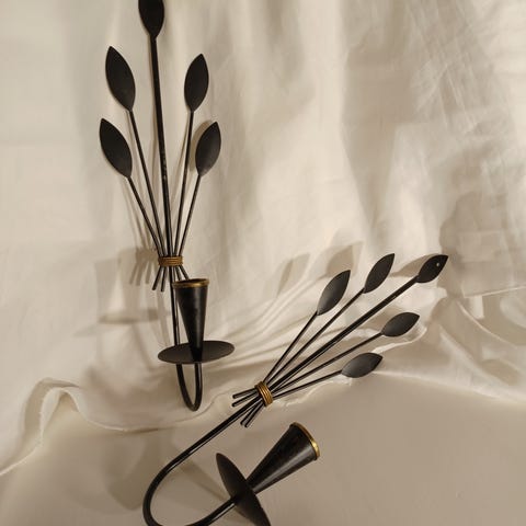Kolme tyylikästä messinkistä, tukevaa kynttilänjalkaa, jotka edustavat 70-luvun muotoilua. Näissä kynttilänjaloissa on yksinkertainen ja ajaton muoto, joka sopii monenlaisiin sisustustyyleihin. Kahden sisällä oma tuikku paikka.