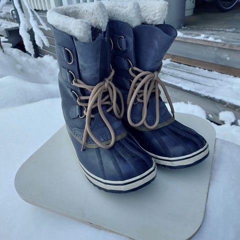 Vähäisellä käytössä olleet sorel talvisaappaat, carnival boot, koossa 40. Käytönjälkeä värjäyminä kumiosissa mutta muuten ei mainittavaa moitetta, ehjät ja siistit.