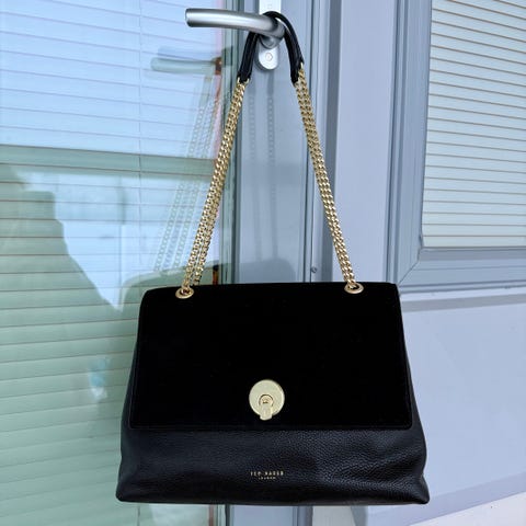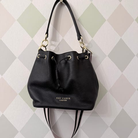 Ted Baker London musta nahkainen naisten olkalaukku. Malli Darcelo . Sopii arkeen ja juhlaan. Tilava. Hyvät säädöt, pehmeä ja leveä olkahihna. Tummanvihreä , beessi raita. Loppuunmyyty monesta nettikaupasta. 10 kk vanha. Hki Stockkalta ostettu. Lahjaksi saatu. Itsellä ei laukulle käyttöä. Laukussa kullanväriset vetoketjulliset osiot ja säädettävä olkahihna. Vetoketjut liikkuu sulavasti .2 suurta vetoketjullista taskua. Tilava.Vetoketjullinen sisätasku. Ks. tarkemmat tuotetiedot esim. Stockmannin sivuilta. ( hinta siellä 179 e ) Dustbag mukaan ,
