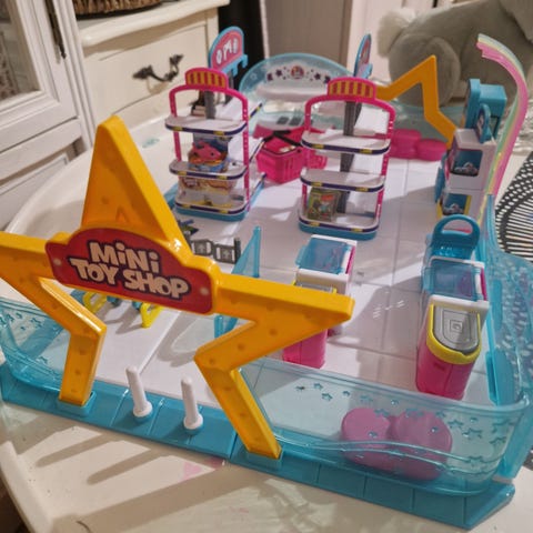Leikkikauppa ja kassakone. Kassakone toimii pattereilla. Käytettyjä ja leikittyjä, mutta toimivia.