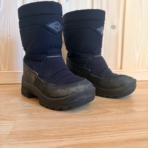 Kuoman talvikengät, koko 29 sisämitta n. 18 5cm. Pari tahraa ulkopinnassa joita en yrittänyt putsata. Mielestäni silti hyvä käytetty kunto, sisävuoressa ei juuri kulumaa.