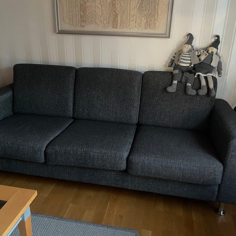 Harmaa divaanisohva. Kätisyys ei vaihdettavissa eikä ole vuodesohva. Voidaan myös tuoda lähialueelle lisämaksusta