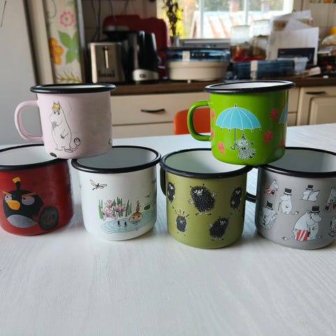Myydään muumimukit 3 kpl, 0,4 l. Hyvin vähällä käytöllä olleet, erittäin siistikuntoiset.