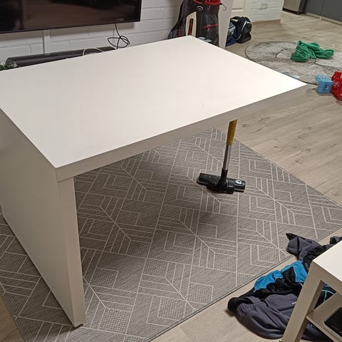 Työpöytänsä toiminut. Pinnassa käytönjälkeä, kannessa sekä pöydän reunassa, ei mitään järin silmille hyppivää kuitenkaan.