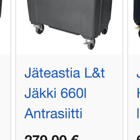 600l siisti astia siirtopyörillä ollut auton kausirenkaitten varastona,myydään tai sopivasti vaihtaen 240l jäteastiaan joka on myös hyvä ja ehjä,siirrot teen myös