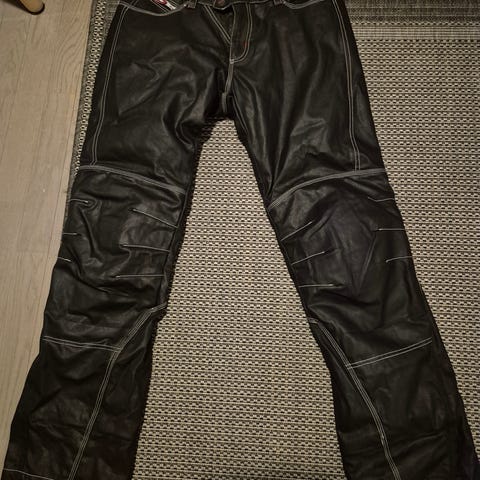 Pinnoitettua denimiä. Irrotettava sisävuori. Lahkeet lyhennetty kokoon 160 cm. Käytetty.