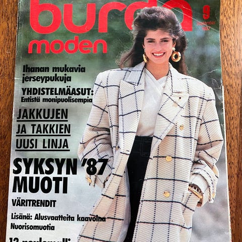 Hakusanoja: Burda 10/1987 10/87 1987 loka käsityölehti käsityölehdet käsityölehtiä käsityö kaavalehti kaavat kaava lehti suuri sk ottobre päähine hattu kellohame nahkatakki kauluspaita talvitakki syystakki kevättakki yöpaita yöpuku yöasu yöasut yömekko pyjamamekko pyjama pyjamapaita pyjamahousut pyjamashortsit pöksyt pitsipeitto reikäpitsi reikäommel mies-paita mies-housut mies-pusakka 80-l 80-luku 1980 1980-l 1980-luku kasari retro burda-lehti