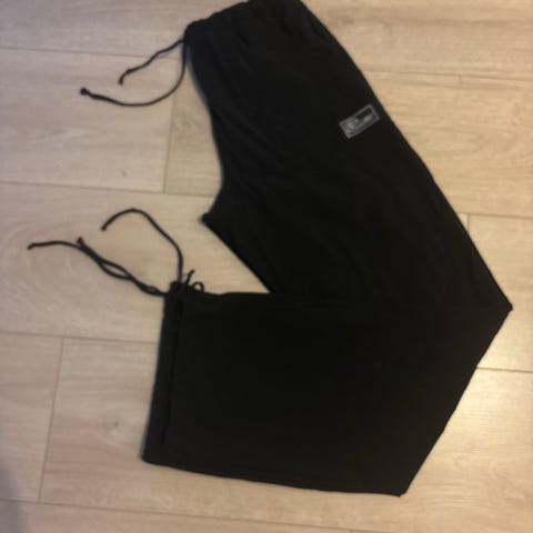 Nike mustat collegehousut, joissa on nauhakiristin lahkeensuissa. Materiaali ei ole määritelty. Soveltuvat monipuoliseen käyttöön, kuten vapaa-aikaan ja urheiluun.