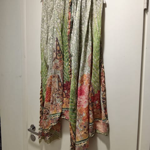N.90cm x 90 cm +hapsut. Hapsut vanuneet, muuten siisti kunto. Mielestäni tämä on villaa.