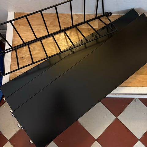 String Seinähylly 3-tasoinen valkoinen, mitat 60 cm leveä, 15 cm syvä ja 50 cm korkea. Suunnittelija Nils Strinning. Sopii seinälle kiinnitettäväksi säilytykseen.