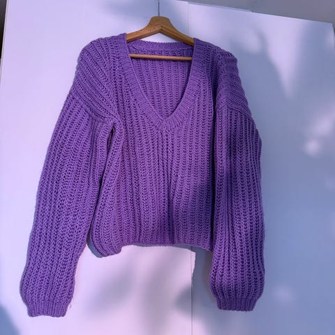 Myydään tarpeettomana, sopii xs-s kokoiselle todella hyvin. Vähän cropattu ja pallomaiset hihat. En tiedä lankamerkkiä (sukulainen oli tehnyt tämän minulle), mutta villapaita on pehmeä ja hyväntuntuinen iholla.