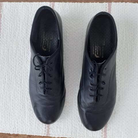 ABT (American Ballet Theatre) merkkiset mustat steppikengät. Merkattu koko on 40 mutta ovat pientä kokoa. Tämä on tyypillistä tälle merkille. Vastaa n. 38.5 kokoa. Jos kapea jalka niin 39 koko varmaan hyvä. Keinonahkaa. Pinnassa on naarmuja käytöstä (huomioitu hinnassa) josta kuvat mitkä korostaa naarmuja hieman enemmän kuin näyttää ’luonnossa’.
