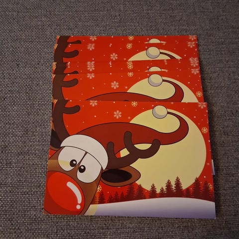 Kaksiosaisia käsintehtyjä kortteja.
