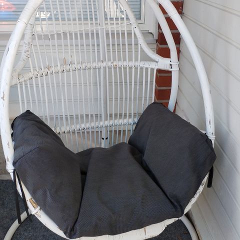 Jo hieman kulahtanut, mutta täysin kunnossa oleva rottinkinen keinutuoli.
