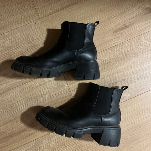 Myyntiin 1-2 kertaa jalassa olleet nilkkurit. Nahkajäljitelmää. Nauhat edessä, sivussa vetoketju. Merkki mywear. Vastaa hyvin kokoa 39. Yritin mitata sisämittaa mutta se oli vaikeaa. Näyttäisi että mitta 25,5 cm. Hyvässä kunnossa.
