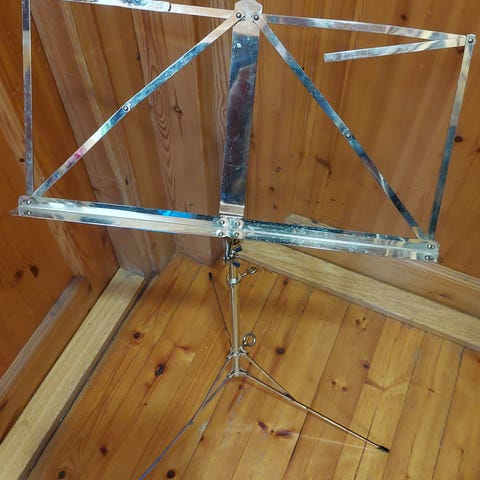 Notsenständer Vintage nuottiteline 80-luvulta, valmistettu metallista. Teline on säädettävä ja hyvässä kunnossa, moitteita. Alluperäinen pakkaus.