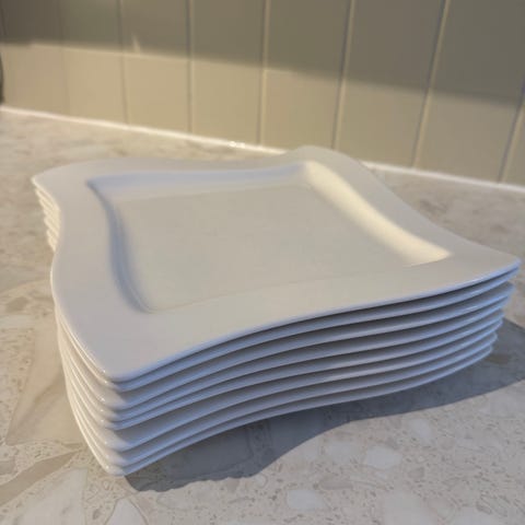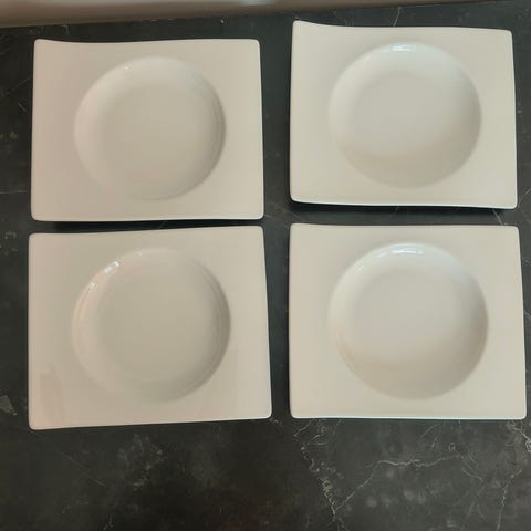 Villeroy & Boch New Wave leipälautaset x 7. Koko 18 x 15 cm. Konepesun ja mikroaaltouunin kestävät. Väri: valkoinen.
