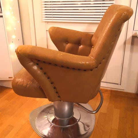 Käytetty kampaamotuoli. Mitat leveys72cm.