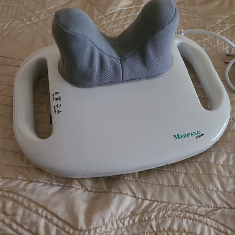 Vähän käytetty niskahierontalaite, säädettävä voimakkuus ja lämmitys lihasten rentoutukseen. Voi käyttää myös alaselälle ja reisille. Toimii verkkovirralla.