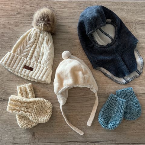 Löytyy paksumpaa haalaria, softshell haalaria. Lisäksi kypärämyssy ja pipo. kintaat jaloille ja käsiin.