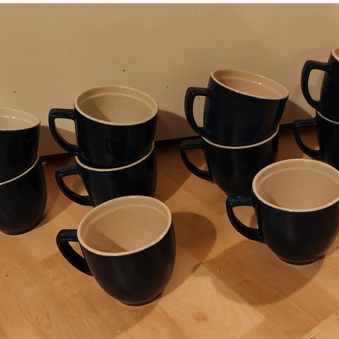 Kermansavi oliivikuppeja 4valkoista, 8 vihreää. Kahta eri kokoa. 4 vihreätä aluslautasta. Kermakko vihreä 1kpl. Yhdessä lautasessa pieni rikama,näkyy kuvassa.