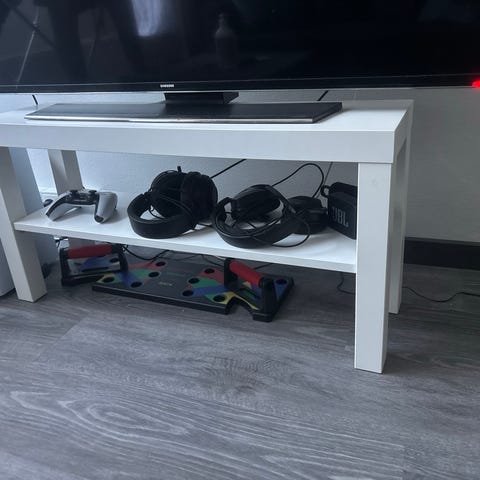 Jykevä rakenteinen tv-taso/pöytä.