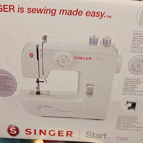 Singer M3205 ompelukone. Käyttökerrat mahtuu yhden käden sormiin.