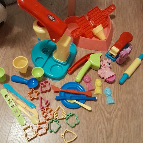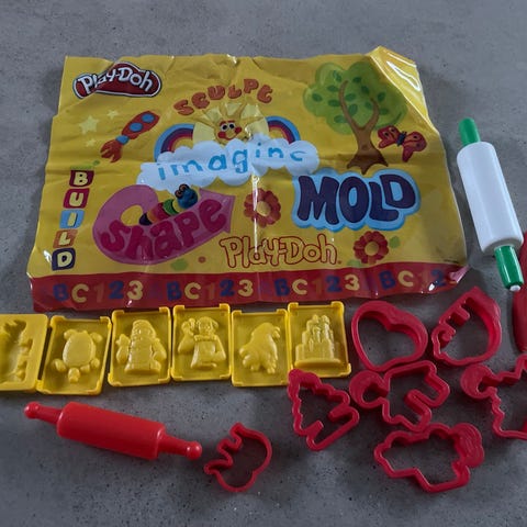Play-Doh lasten leikkisetti sisältää useita purkkeja muovailuvahaa eri väreissä sekä erilaisia muovailuvahan muotoiluvälineitä ja muotteja. Setti on tarkoitettu lasten luovaan leikkiin ja muovailuun.