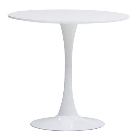 Stemman puinen, pyöreä ruokapöytä. Korkeus 74cm ja leveys 100cm. Pöytätason maalasin ja se on nyt siisti. Pintaan jäi pieniä pölyhiukkasia maalin kuivuessa eli ihan pieniä epätasaisuuksia on, mutta ne jää piiloon kun laittaa pöytäliinan.