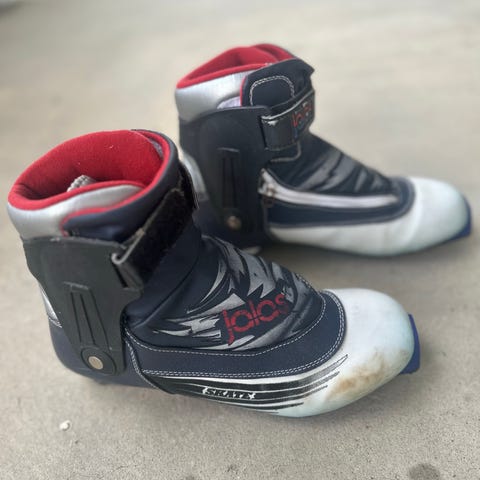 Siistissä kunnossa olevat Jalaksen hyvin pehmustetut luistelumonot. Koko 6 eli 39. Nauhoilla kiristysmahdollisuus, ja lumilukko estää lumentulon kenkään sisään. Hyvin muotoiltu kenkä, joka pysyy hyvin jalassa. Toinen tarrallinen kivistyslenkki vaihdettu uuteen, katso kuva.