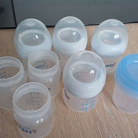 Avent tuttipulloja 5kpl. Korkkeja löysin 3kpl. Nää oli ihan parhaat pullot meidän vauvalle! Postitus ok.