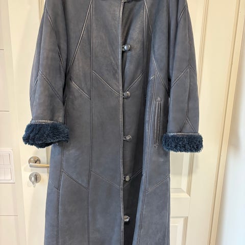 Kotimainen Aaltosen valmistama lammasturkki tod näk 1970-luvulta. Melko slim fit - leikkaus, pituus vähän polven alle, 115cm. Hihan pituus käännettynä kuten kuvassa 58cm. Kai-kai 37cm.