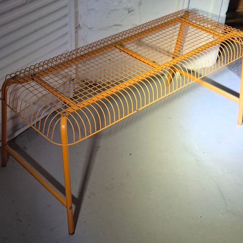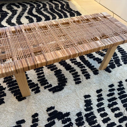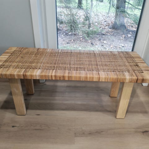 Penkkinä käytetty. Käytönjälkeä on, rottinki jostain kohtia purkautunut, mutta toimii hyvin edelleen penkkinä. Meillä ollut pehmusteet tai lampaantalja päällä