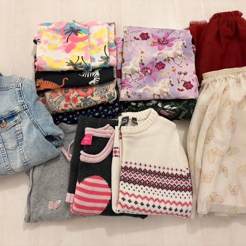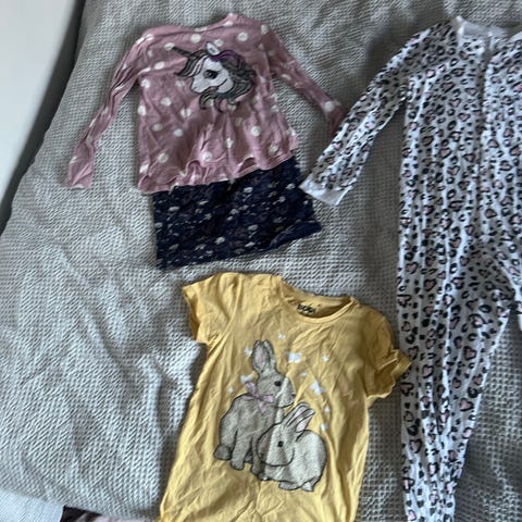 Kuvan mukainen vaatepaketti tytölle. Sis. 2 mekkoa ( koko 128, siistit), muutama paita ( tahroja löytyy), villervalla - kapeita ( tahrat). Eivät ole priimakunnossa, mutta varmasti kelpaavat koti/piha käyttöön.
