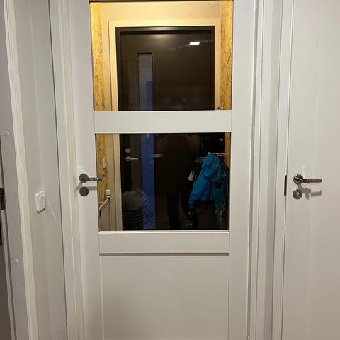 Pakkaus avattu ja pakattu takaisin käyttämättömänä eli kuin uusi. Pelkkä ovi, värinä valkoinen.