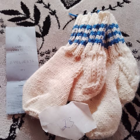 Novita 7-veljestä langasta neulottu. Koko 23. Ihana pupu kuvio varressa