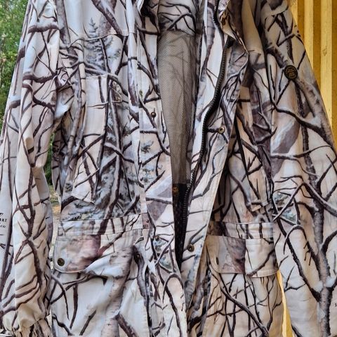 Talvimetsästysasu, joka koostuu takista ja housuista. Väri valkoinen musta kuviollinen. Koko 54. Sopii talviurheiluun, metsästykseen ja ulkoiluun kylmissä olosuhteissa.