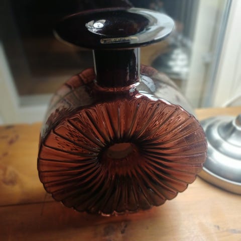 Helena Tynellin Riihimäen Lasille suunnittelema aurinkopullo, pienin koko, tuotannossa 1964 – 1972.